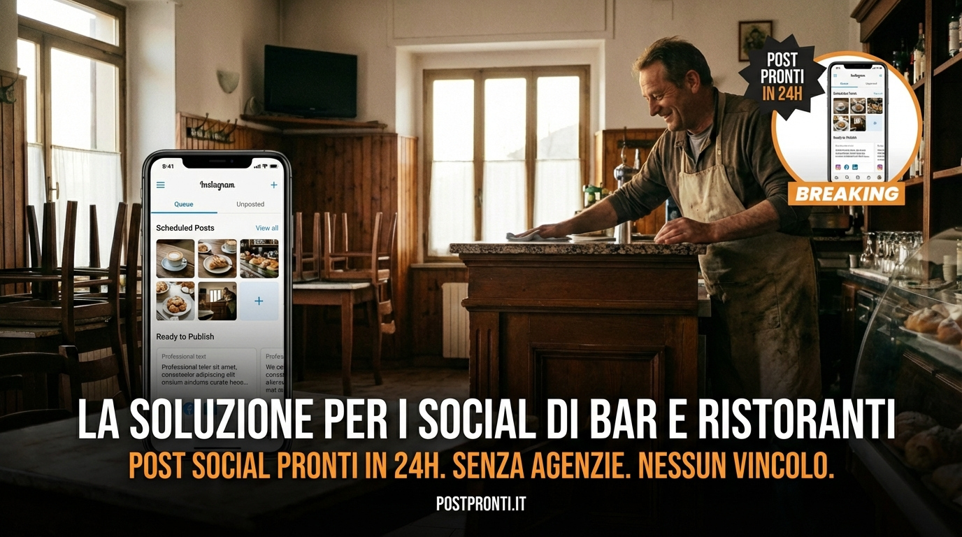 PostPronti.it nasce per aiutare bar, ristoranti e attività locali a comunicare meglio online con post social pronti, senza perdere tempo. Partiamo da chi sei e da che clienti vuoi attirare.